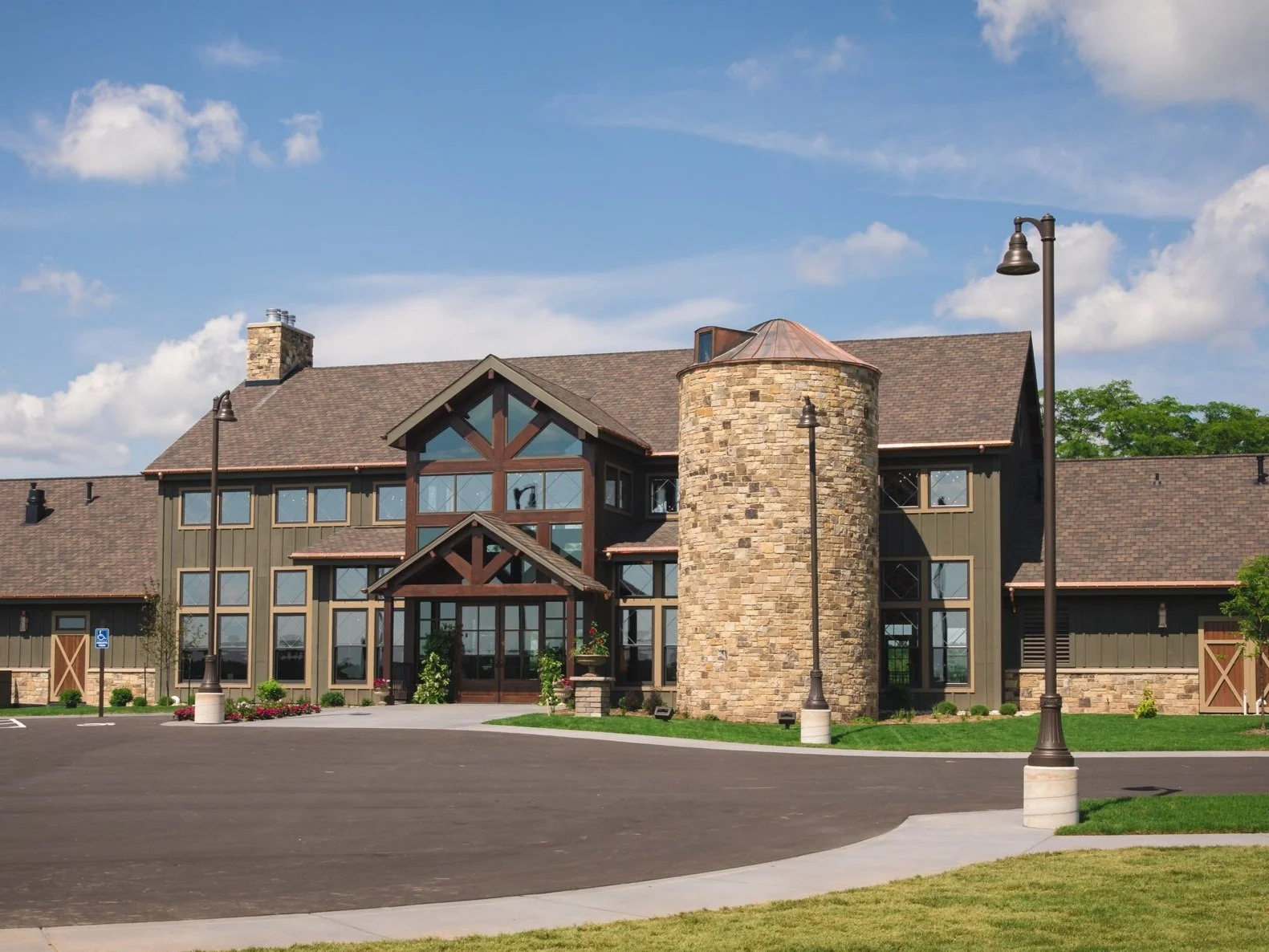 Nestled in the Wisconsin countryside, this premier venue offers an unparalleled setting for corporate events, special occasions, and weddings. Seamlessly blending classic elegance with the serene beauty of the natural surroundings, this venue provides an unforgettable experience for all who visit. Rich wood tones and natural stone evoke a sense of warmth and permanence, while high ceilings and elegant chandeliers create a timeless atmosphere.